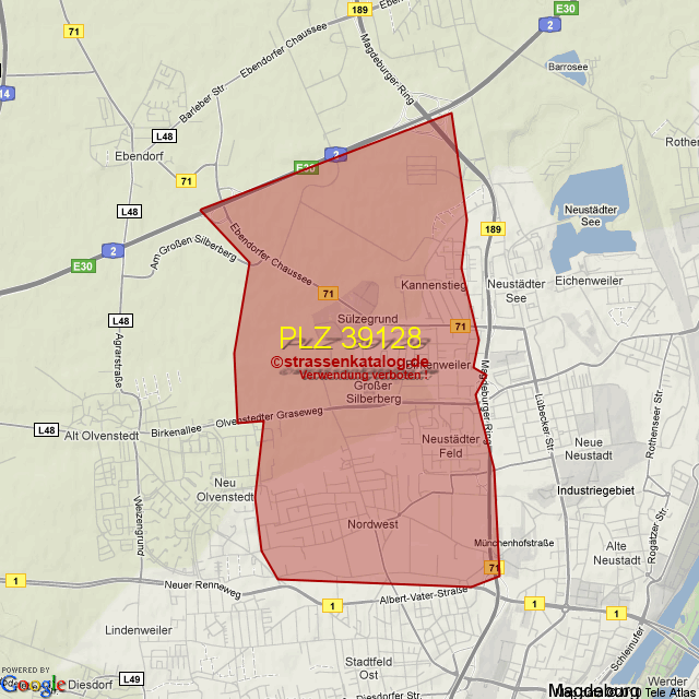 Straßenverzeichnis zur Postleitzahl 39128