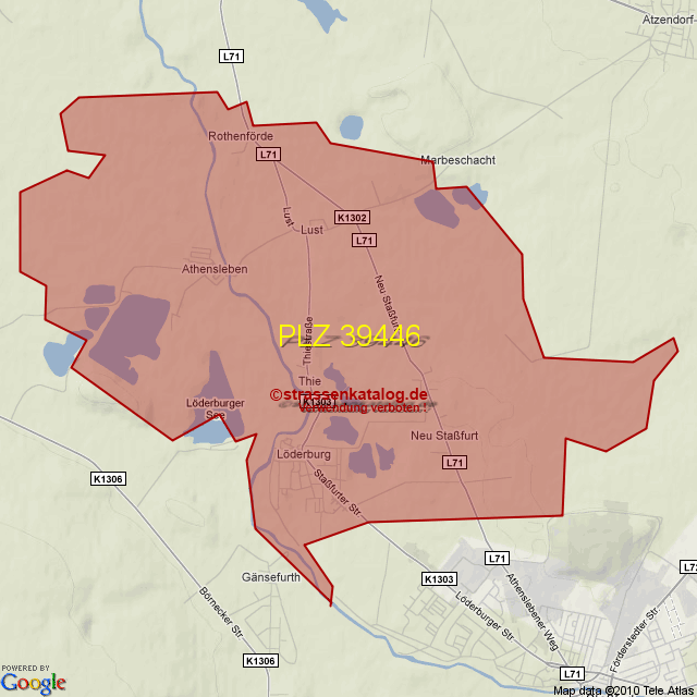 Straßenverzeichnis zur Postleitzahl 39446