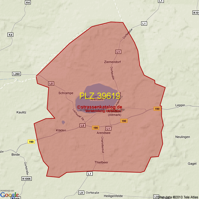 Straßenverzeichnis zur Postleitzahl 39619