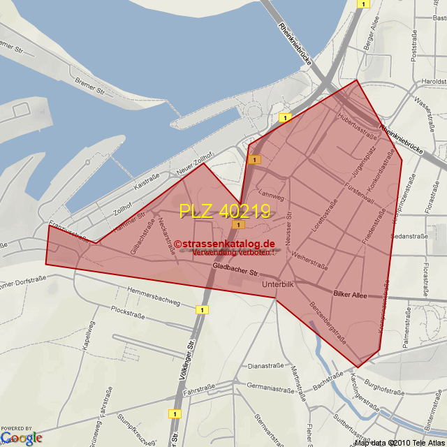 Ortsteile von Düsseldorf mit der PLZ 40219