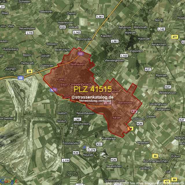 Ortsteile von Grevenbroich mit der PLZ 41515