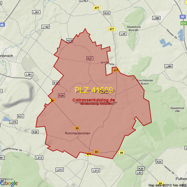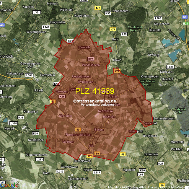Ortsteile von Rommerskirchen mit der PLZ 41569