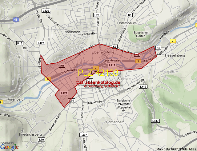 Postleitzahlgebiet (PLZ) 42103