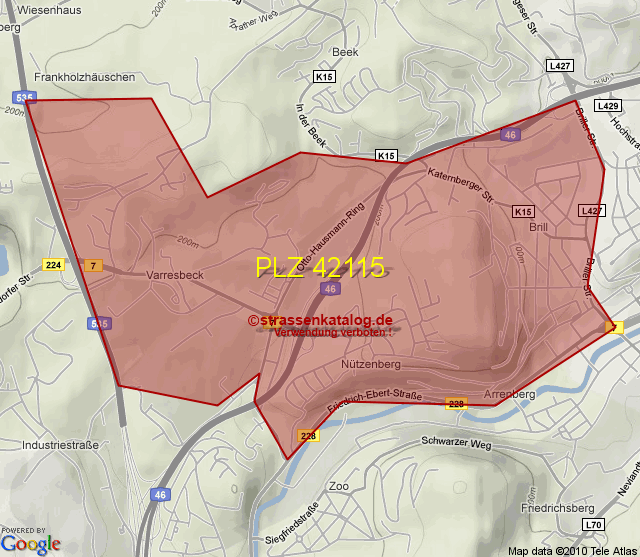 Straßenverzeichnis zur Postleitzahl 42115
