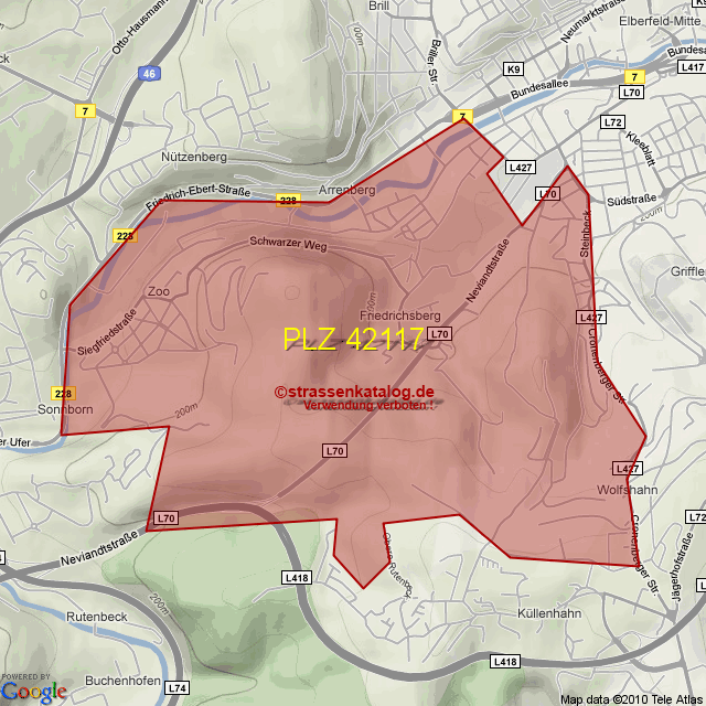Zu der Postleitzahl 42117 wurden 1 Orte und 1 Ortsteile gefunden.