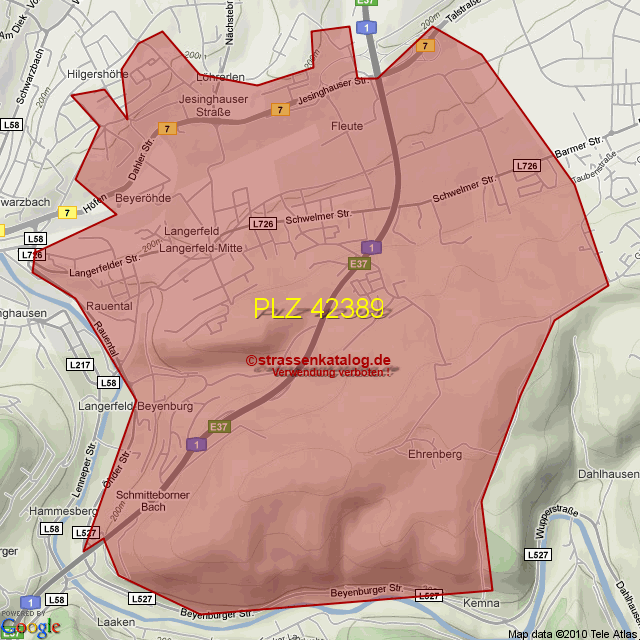 Postleitzahlgebiet (PLZ) 42389