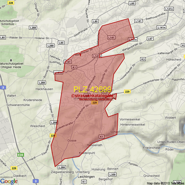 Postleitzahlgebiet (PLZ) 42699