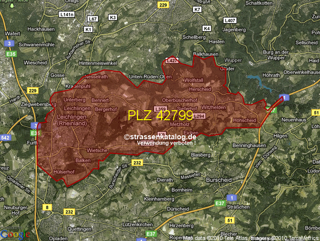 Postleitzahlgebiet (PLZ) 42799