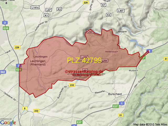 Ortsteile von Leichlingen mit der PLZ 42799
