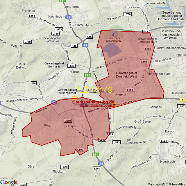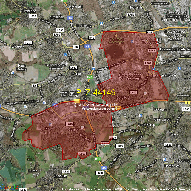 Postleitzahlgebiet (PLZ) 44149