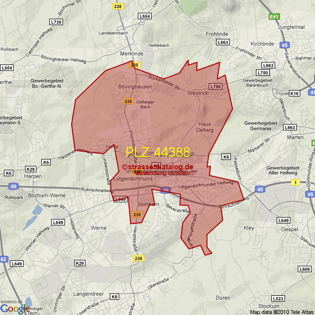 Straßenverzeichnis zur Postleitzahl 44388