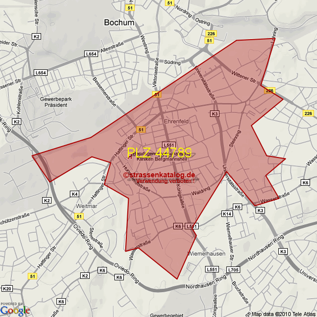 Postleitzahlgebiet (PLZ) 44789