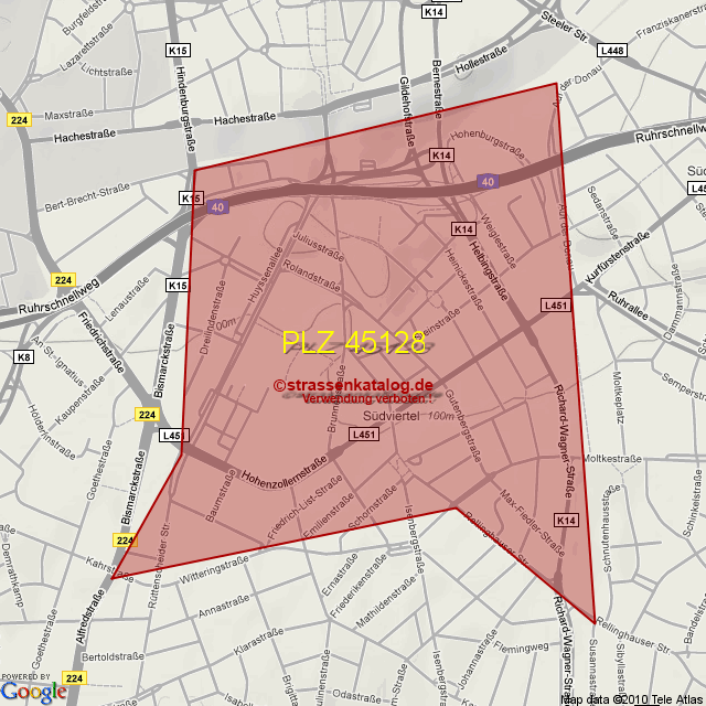 Postleitzahlgebiet (PLZ) 45128