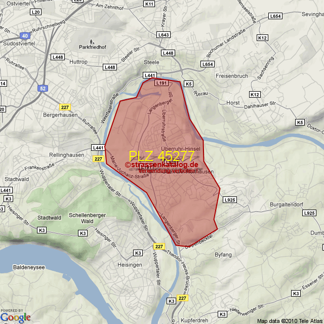 Straßenverzeichnis zur Postleitzahl 45277