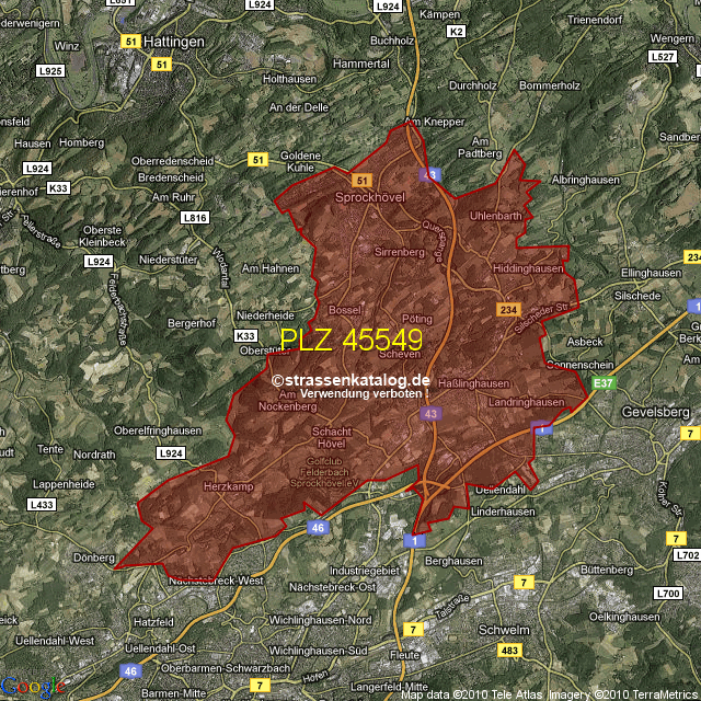 Ortsteile von Sprockhövel mit der PLZ 45549