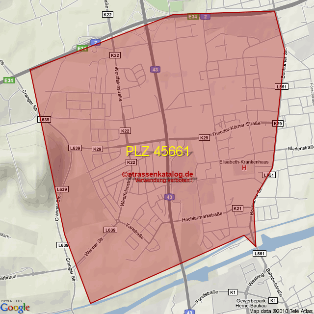 Ortsteile von Recklinghausen mit der PLZ 45661
