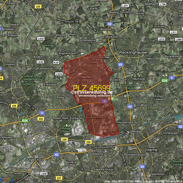 Postleitzahlgebiet (PLZ) 45699