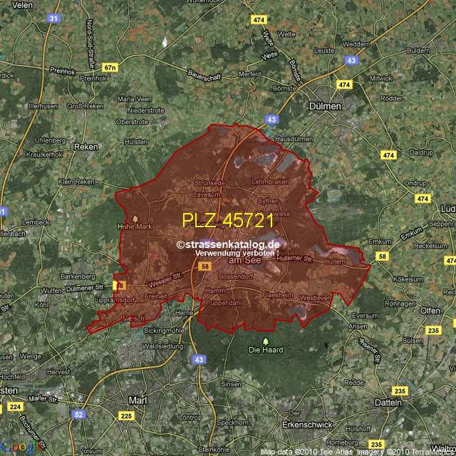 Zu der Postleitzahl 45721 wurden 1 Orte und 18 Ortsteile gefunden.