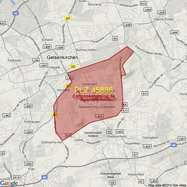 Ortsteile von Gelsenkirchen mit der PLZ 45886