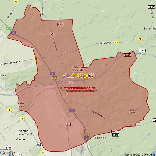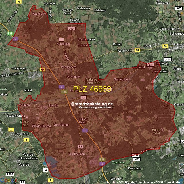 Postleitzahlgebiet (PLZ) 46569