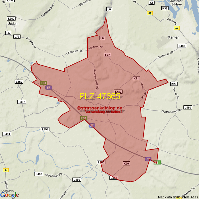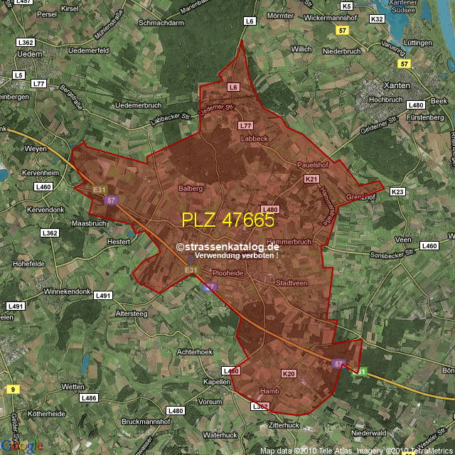 Ortsteile von Sonsbeck mit der PLZ 47665
