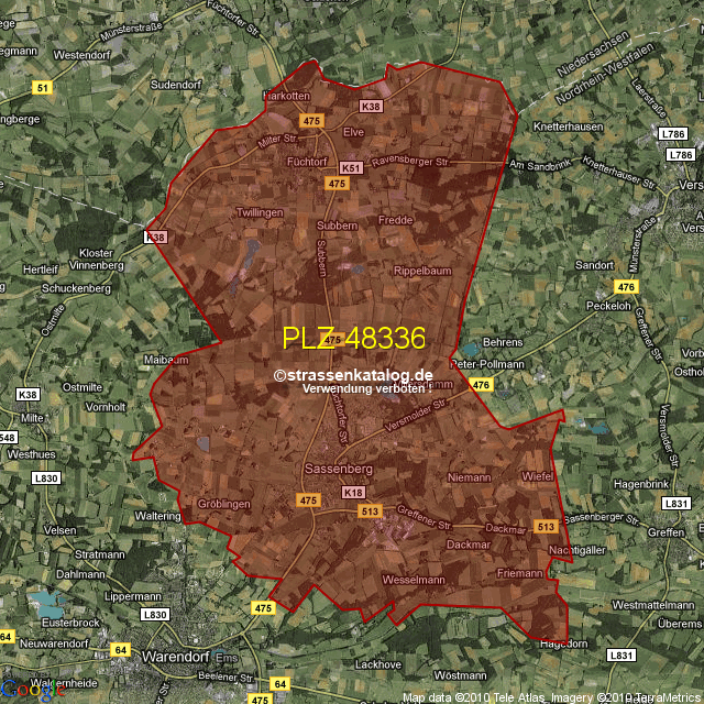 Ortsteile von Sassenberg mit der PLZ 48336