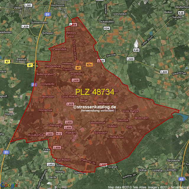 Postleitzahlgebiet (PLZ) 48734