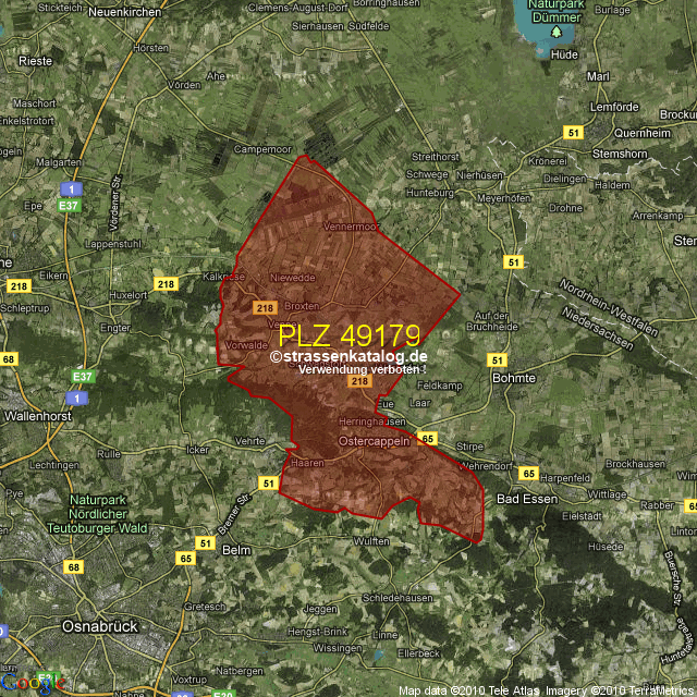 Postleitzahlgebiet (PLZ) 49179
