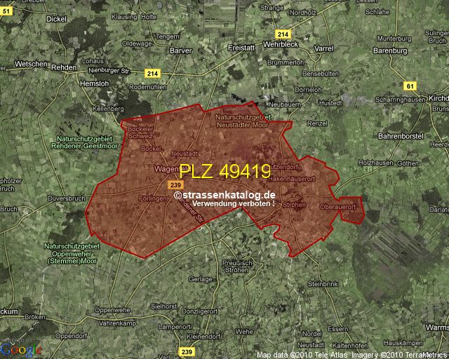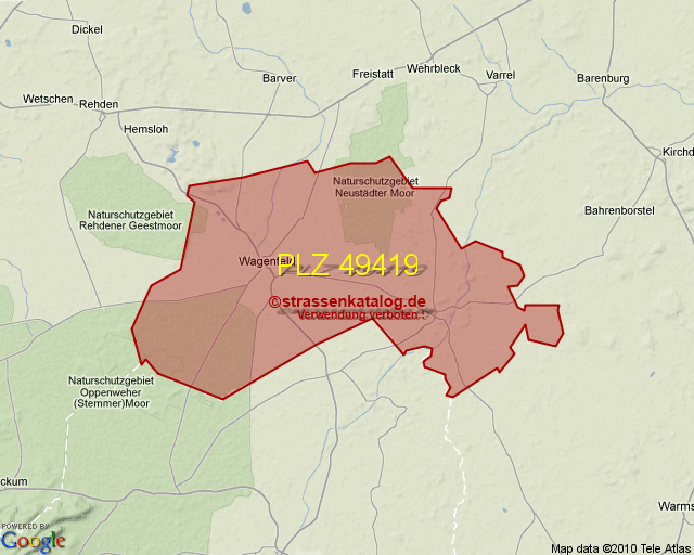 Ortsteile von Wagenfeld mit der PLZ 49419