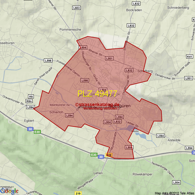 Ortsteile von Ibbenbüren mit der PLZ 49477