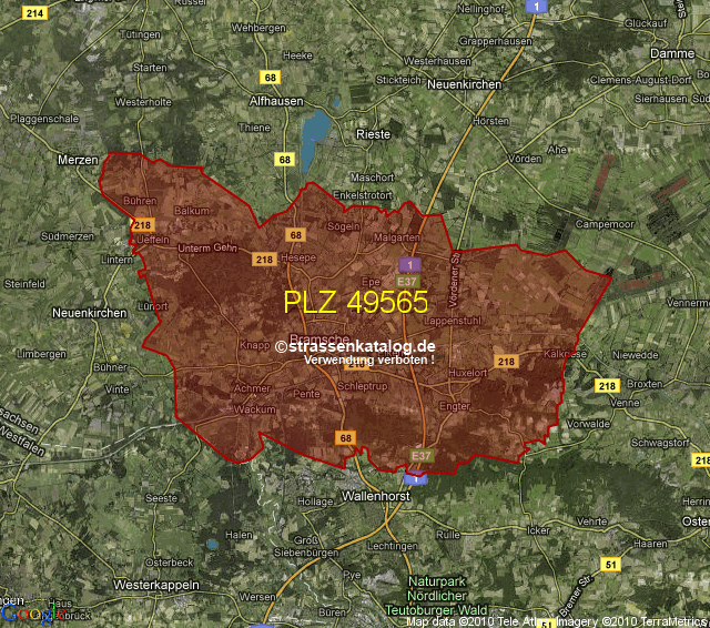 Postleitzahlgebiet (PLZ) 49565