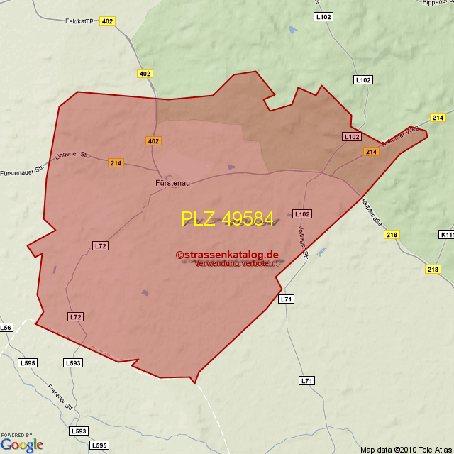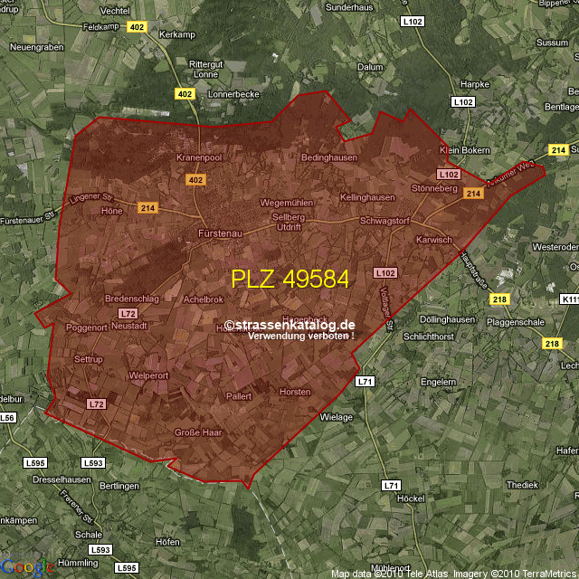Postleitzahlgebiet (PLZ) 49584