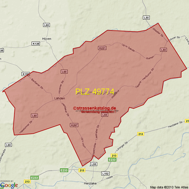 Straßenverzeichnis zur Postleitzahl 49774