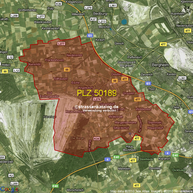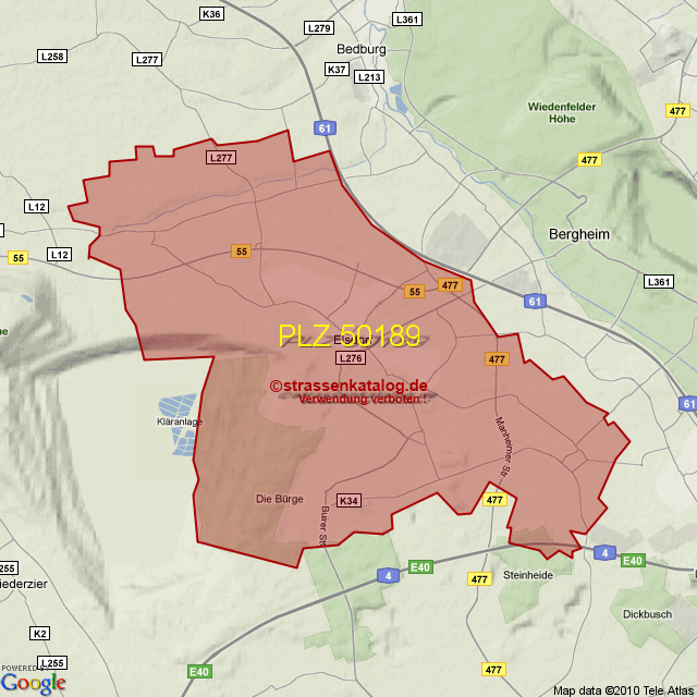 Zu der Postleitzahl 50189 wurden 1 Orte und 15 Ortsteile gefunden.