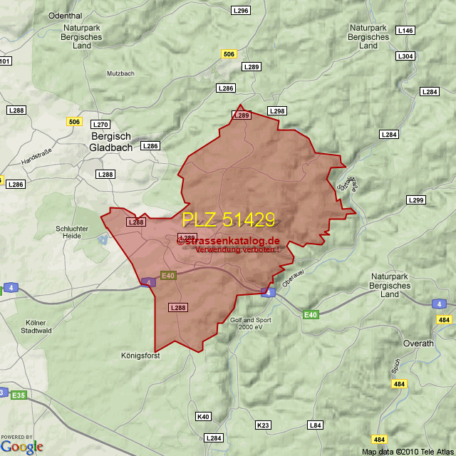 Ortsteile von Bergisch Gladbach mit der PLZ 51429