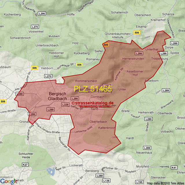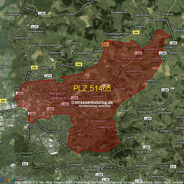 Ortsteile von Bergisch Gladbach mit der PLZ 51465