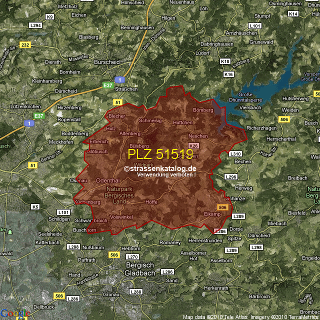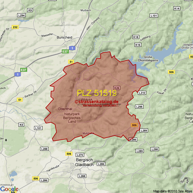 Postleitzahlgebiet (PLZ) 51519