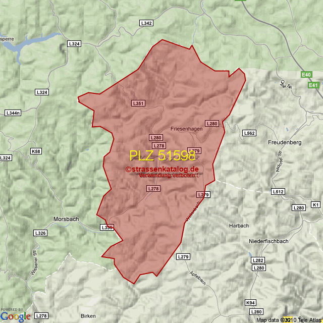 Ortsteile von Friesenhagen mit der PLZ 51598