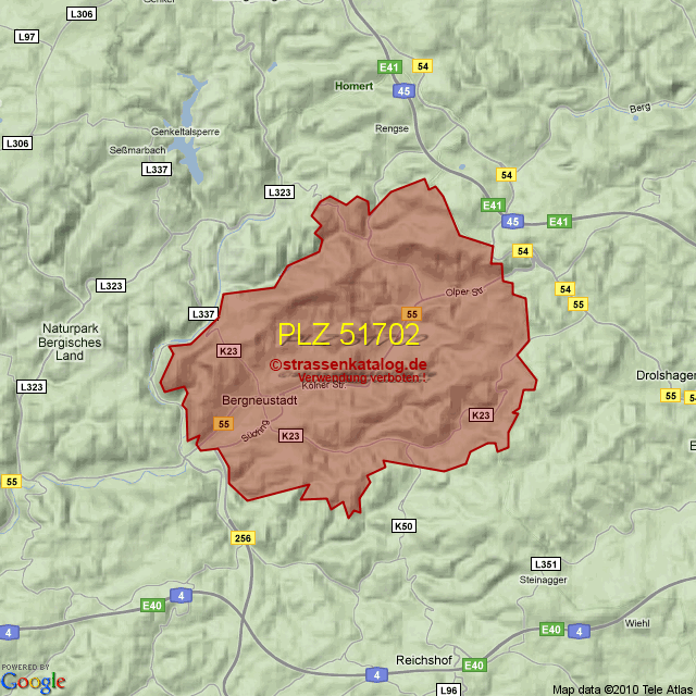 Ortsteile von Bergneustadt mit der PLZ 51702