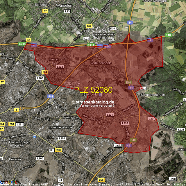 Ortsteile von Aachen mit der PLZ 52080