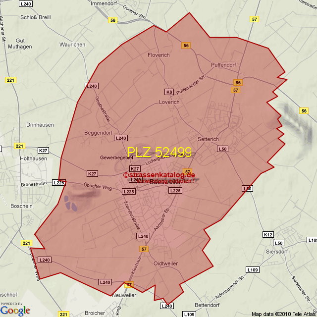 Straßenverzeichnis zur Postleitzahl 52499