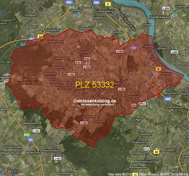 Ortsteile von Bornheim mit der PLZ 53332