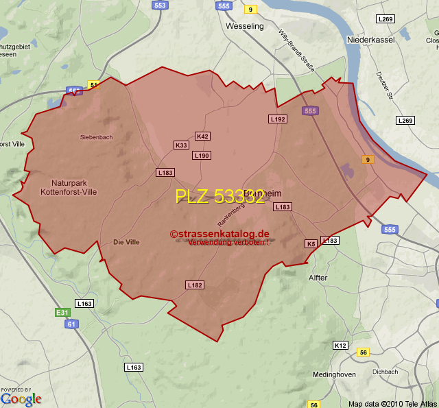 Postleitzahlgebiet (PLZ) 53332
