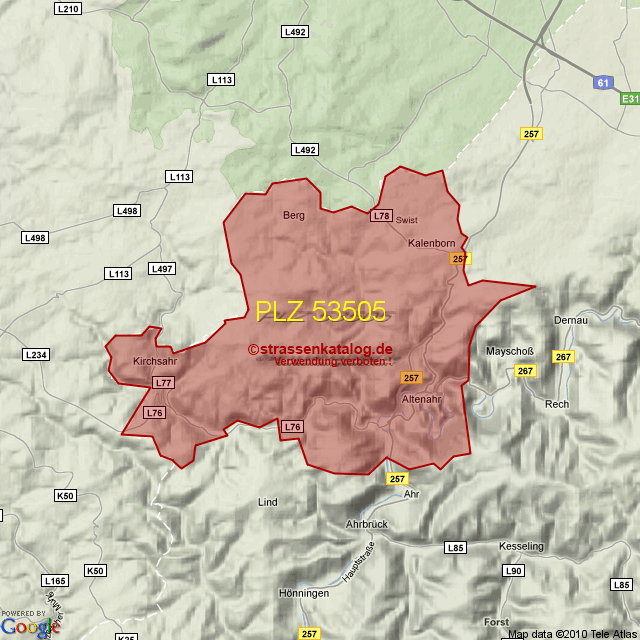 Ortsteile von Kirchsahr mit der PLZ 53505