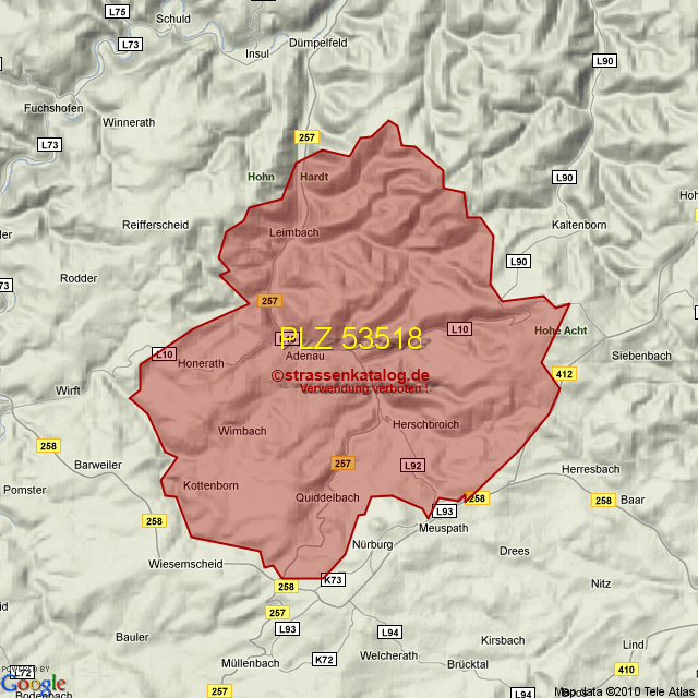 Straßenverzeichnis zur Postleitzahl 53518
