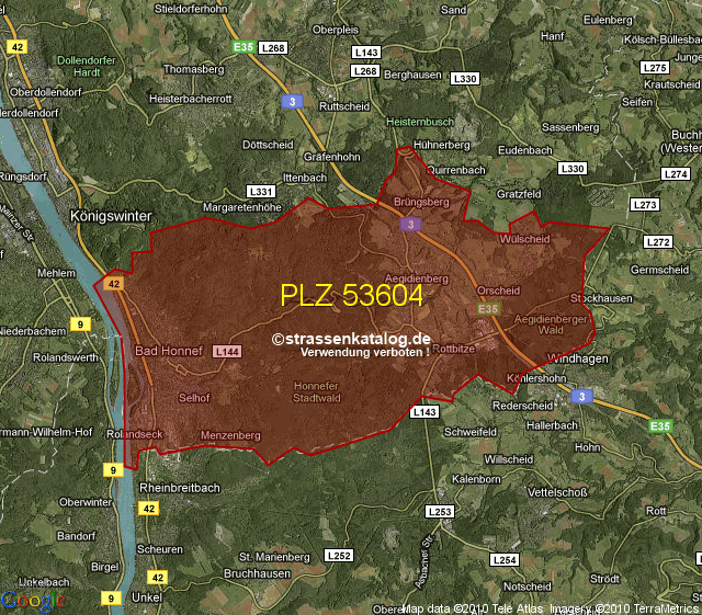 Ortsteile von Bad Honnef mit der PLZ 53604