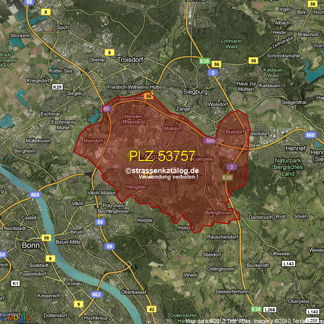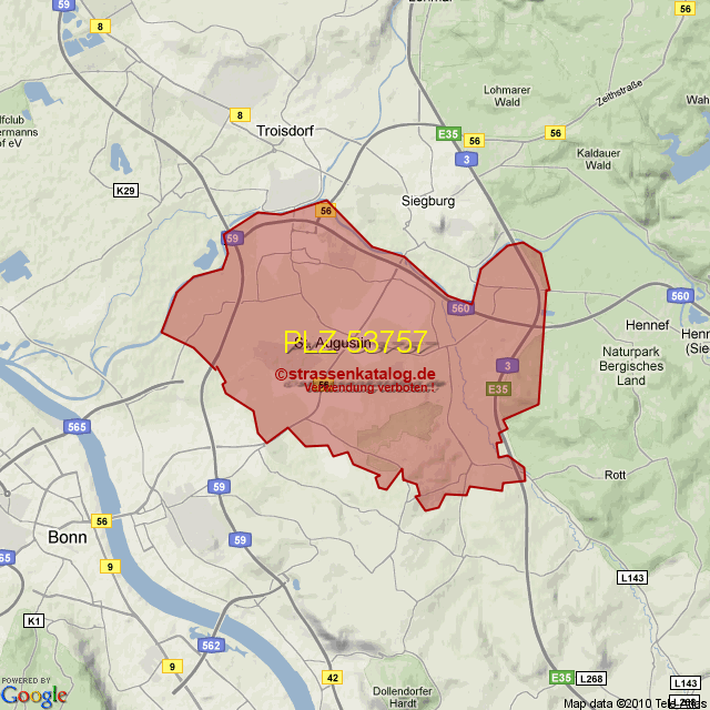 Ortsteile von Sankt Augustin mit der PLZ 53757