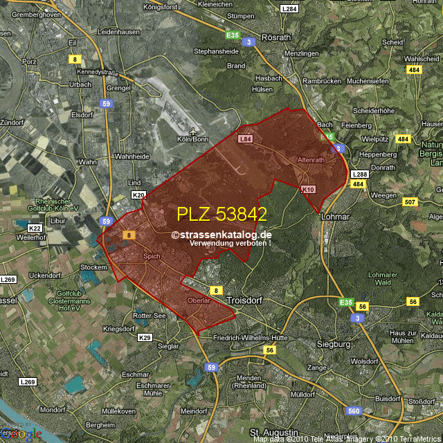 Ortsteile von Troisdorf mit der PLZ 53842