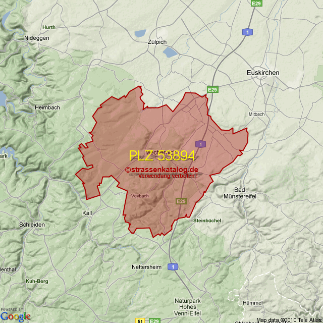 Ortsteile von Mechernich mit der PLZ 53894