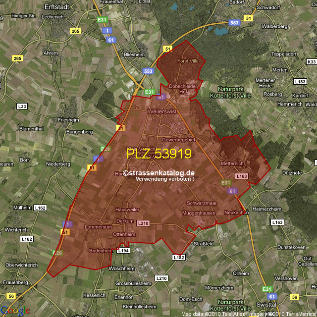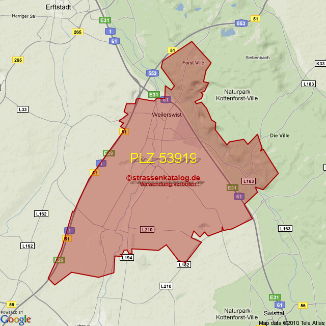 Zu der Postleitzahl 53919 wurden 1 Orte und 16 Ortsteile gefunden.